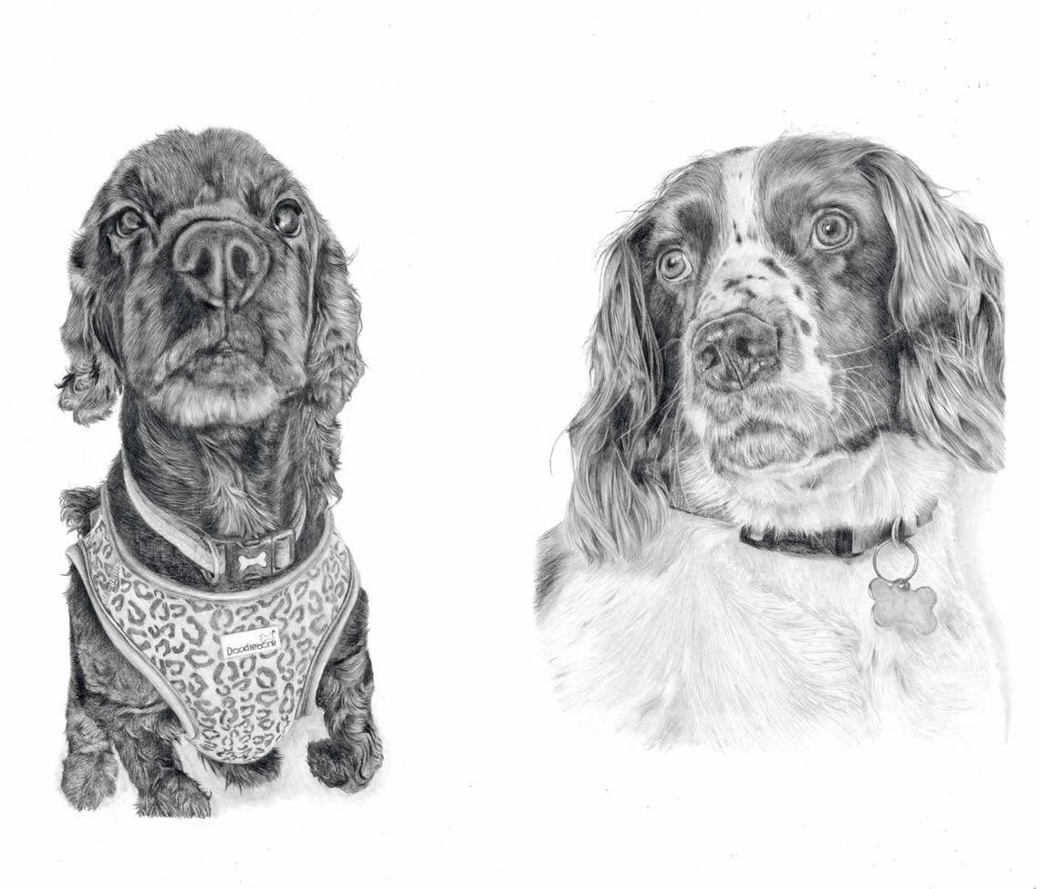 Handcrafted pencil pet portraits created by a professional artist.